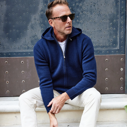 The Napoli Signature Hooded Wool & Cashmere Sweater Navy is a beautifully crafted sweater that blends comfort with refined style. It is perfect for men who appreciate both looks and quality. Since it is made from a soft wool and cashmere blend, it feels warm without being bulky, so it’s great for everyday wear or layering on cooler days.